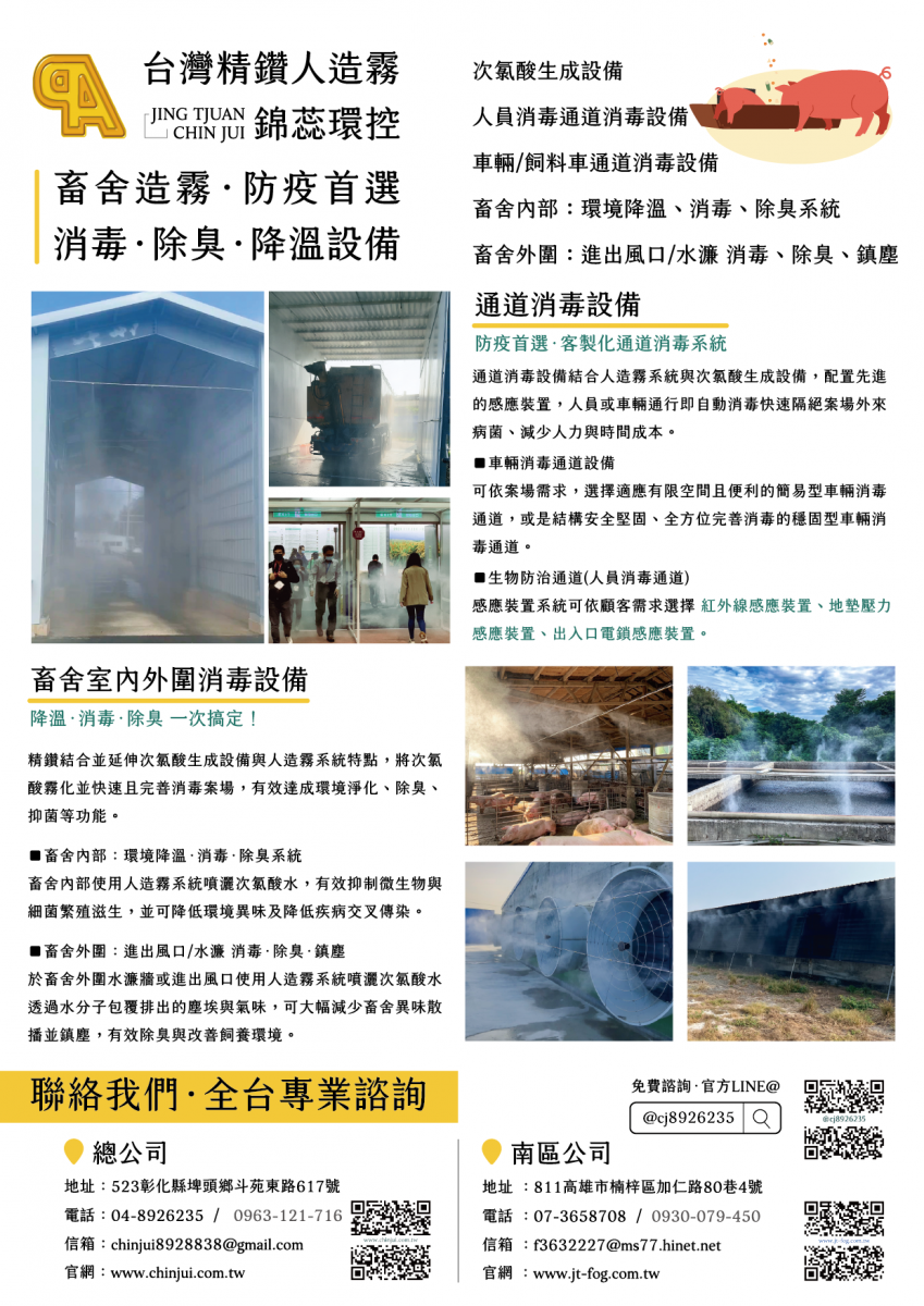 多年來,精鑽人造霧持續投入農畜防疫設備的研發與推廣